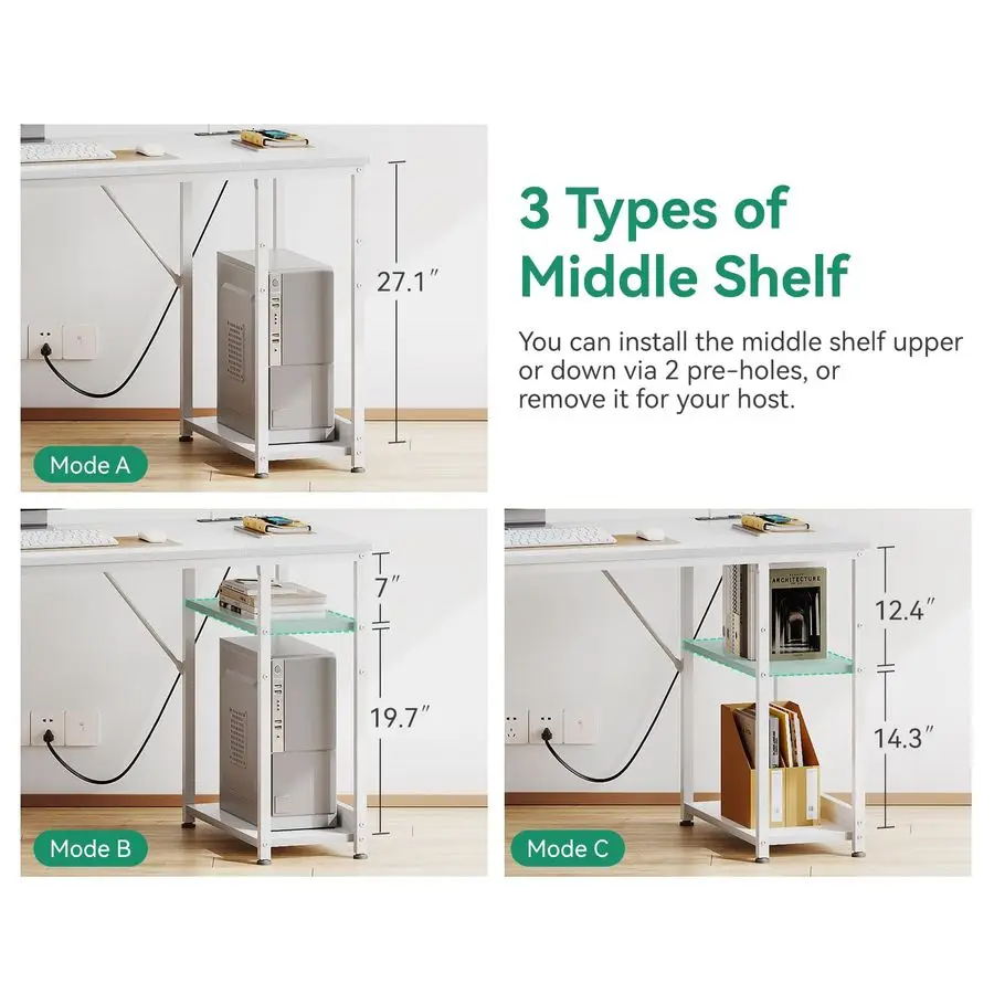 Power Outlets amp Charging Ports computer desk is equipped with 3 power outlets amp 1 USB charging port amp 1 TypeC port for your electronic device. You can easily and conveniently charge smart phone, gaming gear and Bluetooth devices when you are working or playing games.